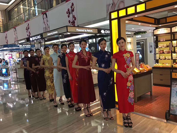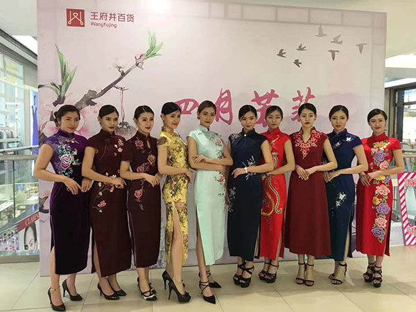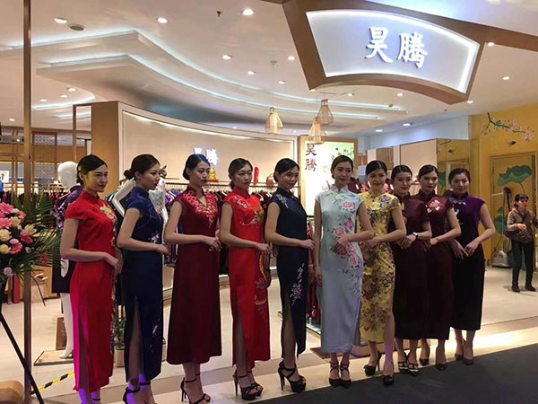 花開時節(jié)悅動京城,北京地區(qū)春季新展。昊騰品牌每件旗袍都金工細(xì)作,每款紋樣都由手工繪制